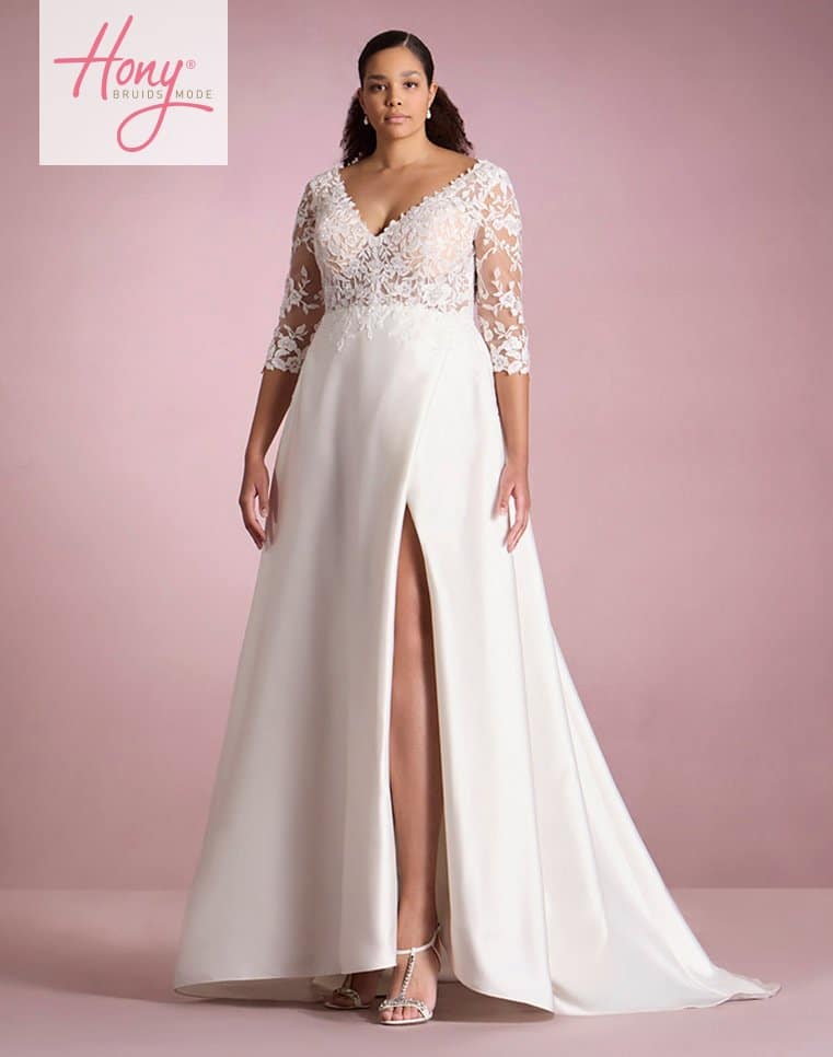Prachtige trouwjurk van het merk White One. Bij Hony bruidsmode doen we er alles aan om bij de toonaangevende bruidsmodehuizen de mooiste trouwjurken voor jou te selecteren. Altijd het laatste nieuws en ontwikkelingen. We gaan alleen voor het allerbeste!