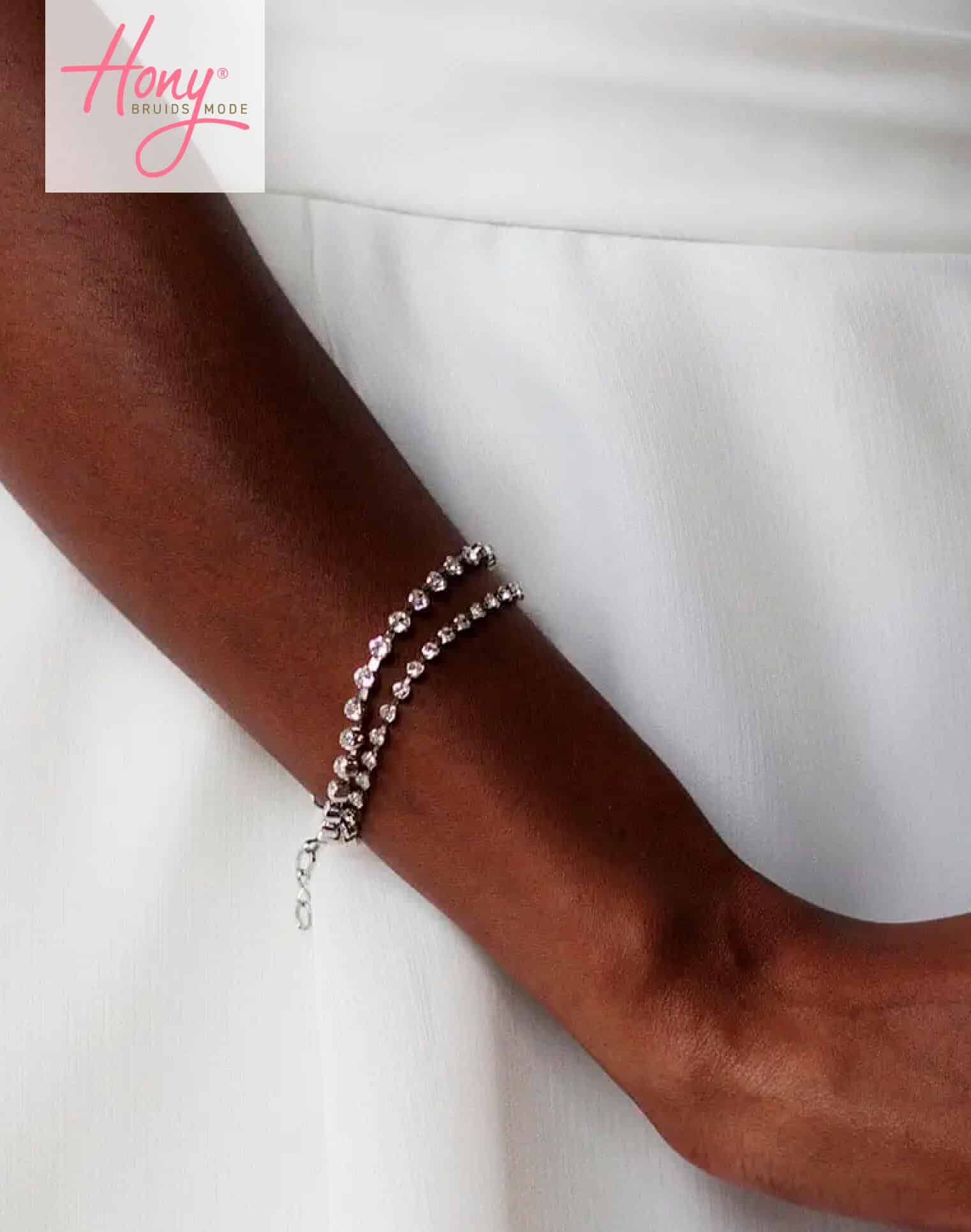 Verfijnde armband met swarovski stenen. Bij Hony Bruidsmode maken we met de mooiste accessoires het plaatje helemaal compleet!