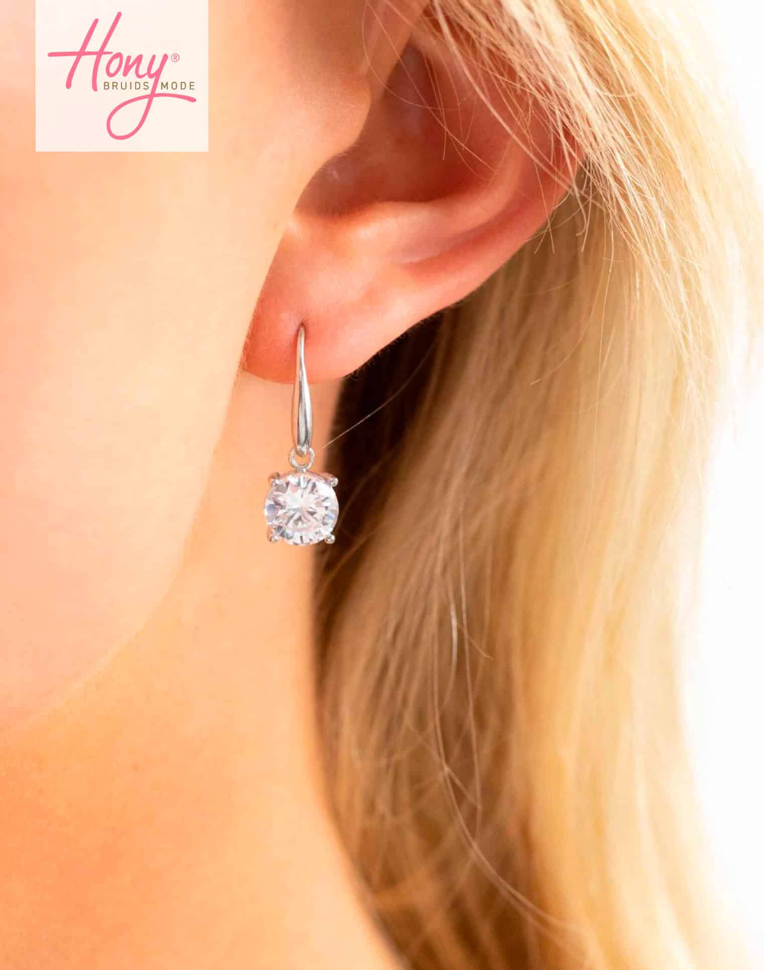 Elegante oorbellen met swarovski stenen. Bij Hony Bruidsmode maken we met de mooiste accessoires het plaatje helemaal compleet!