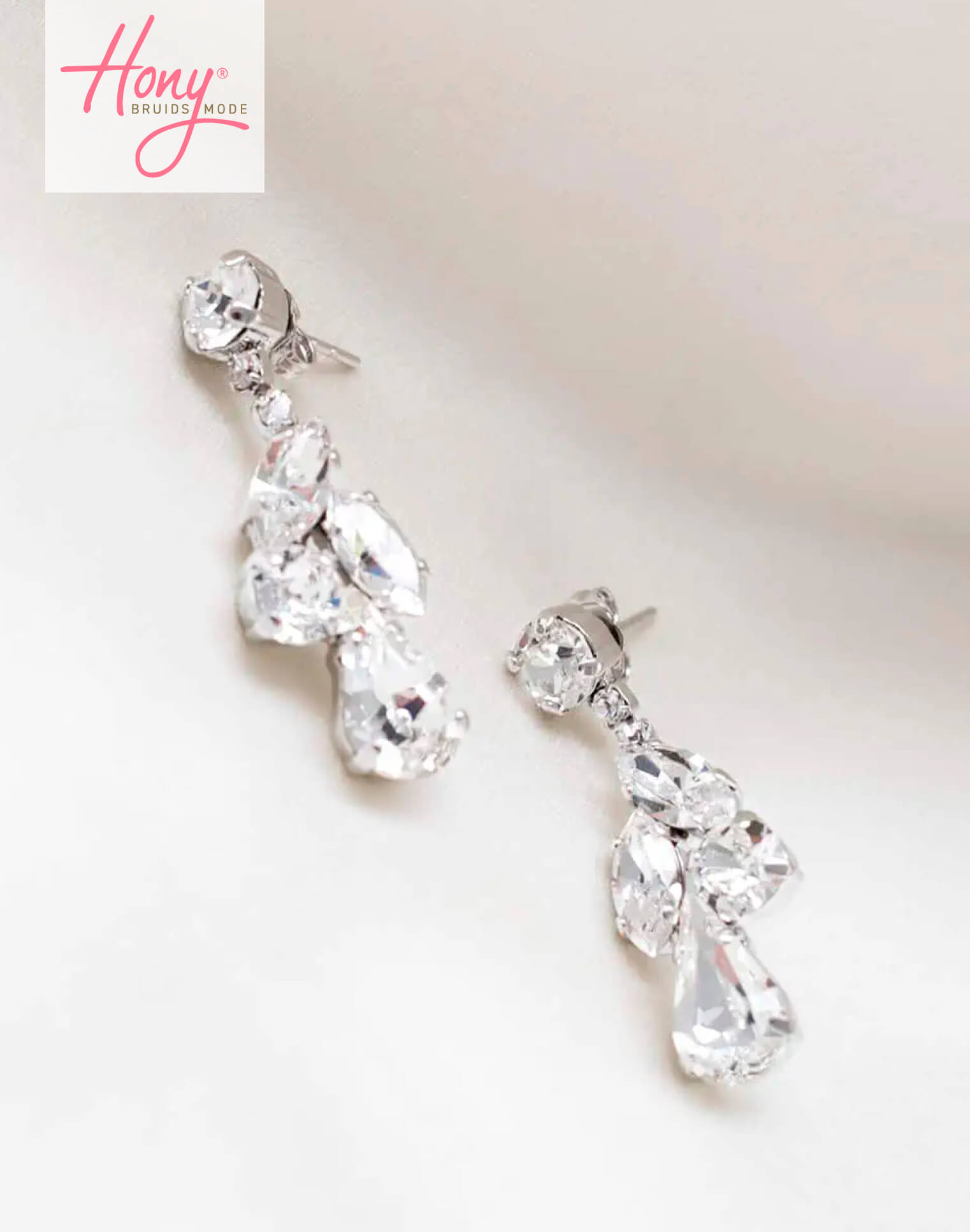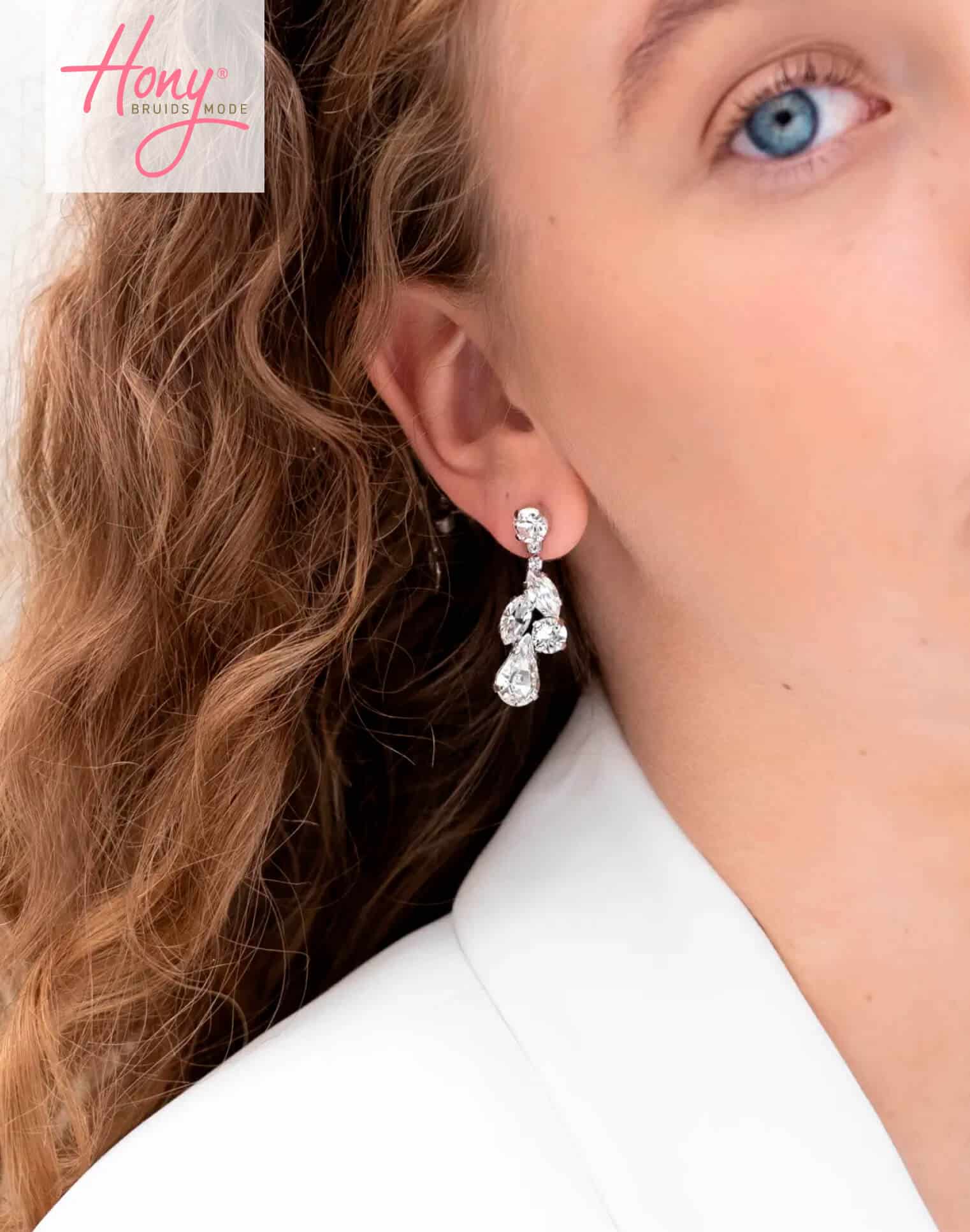 Elegante oorbellen met swarovski stenen. Bij Hony Bruidsmode maken we met de mooiste accessoires het plaatje helemaal compleet!