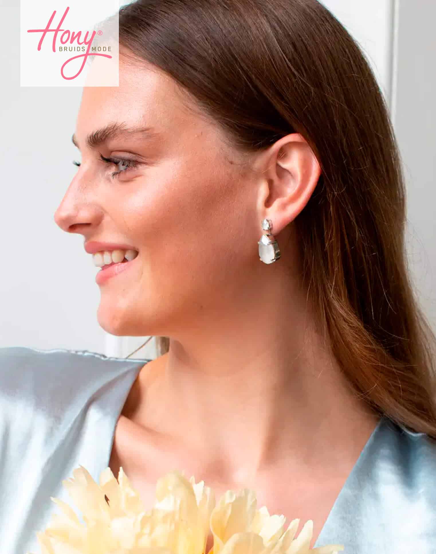 Elegante oorbel met opaal steen in zilver. Bij Hony Bruidsmode maken we met de mooiste accessoires het plaatje helemaal compleet!