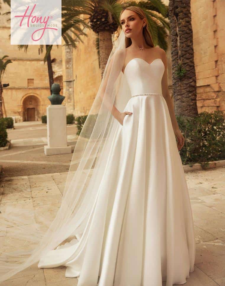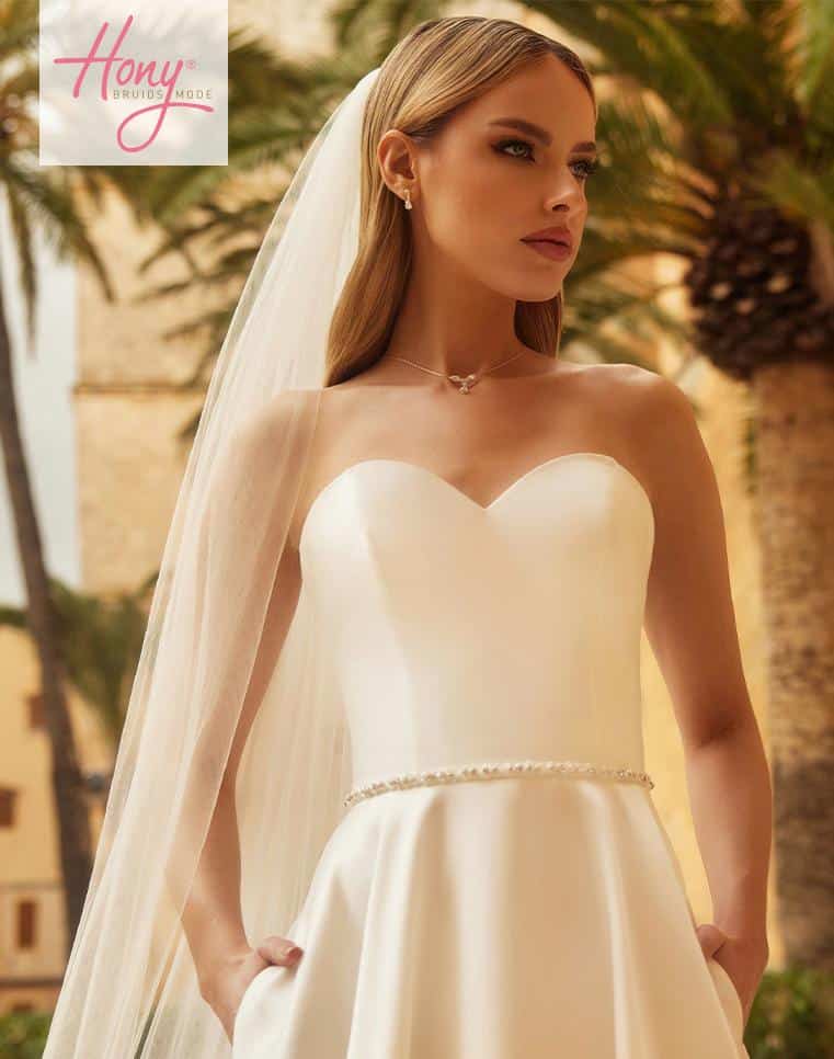 Bij Hony Bruidsmode in Zwolle vind je de collectie van Bianco Evento. Prachtig, simpel en klassiek is het beeld van deze japonnen. De perfecte keus voor een bruid die de nadruk wil leggen op een lichte en comfortabele bruidsjurk. Eenvoud siert!