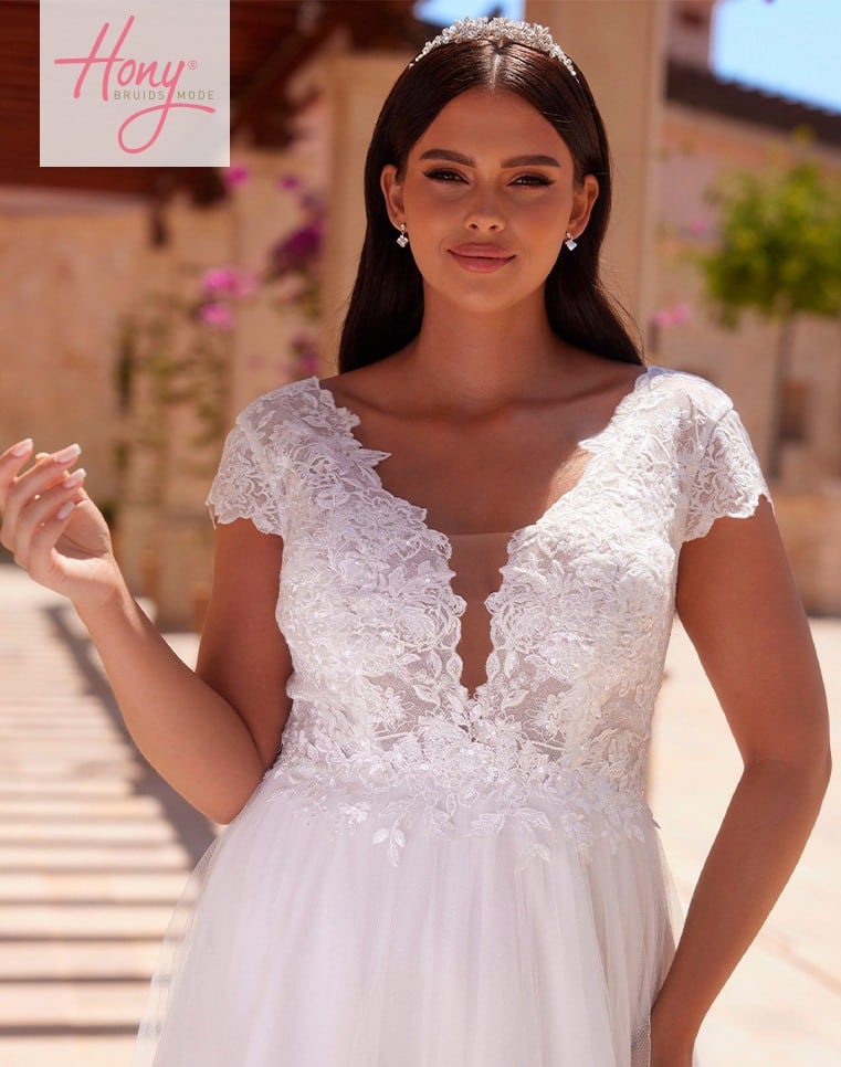 Prachtige trouwjurk van het merk Bianco Evento. Bij Hony bruidsmode doen we er alles aan om bij de toonaangevende bruidsmodehuizen de mooiste trouwjurken voor jou te selecteren. Altijd het laatste nieuws en ontwikkelingen. We gaan alleen voor het allerbeste!