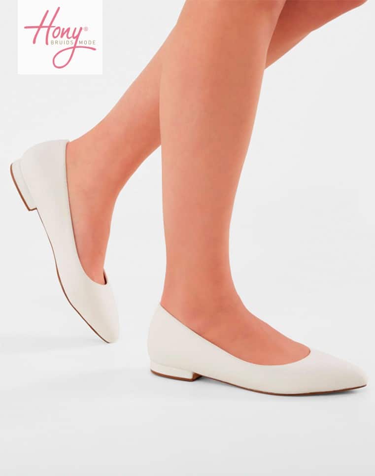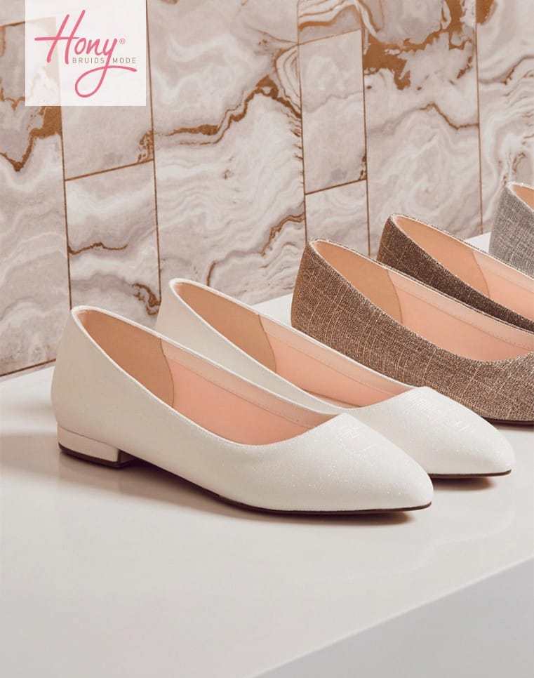 Bepaal zelf de kleur van je schoenen, met als resultaat een perfect matchende outfit! Informeer naar de mogelijkheden van de kleurservice bij Hony Bruidsmode.