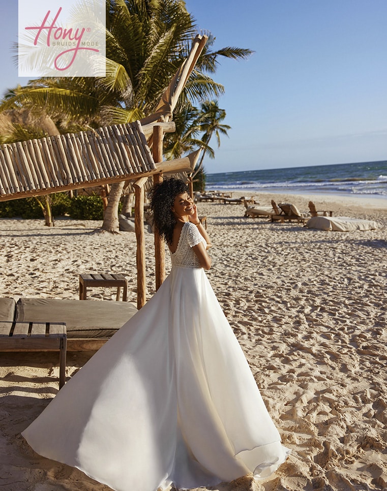 Prachtige trouwjurk van het merk Hervé Paris. Bij Hony bruidsmode doen we er alles aan om bij de toonaangevende bruidsmodehuizen de mooiste trouwjurken voor jou te selecteren. Altijd het laatste nieuws en ontwikkelingen. We gaan alleen voor het allerbeste