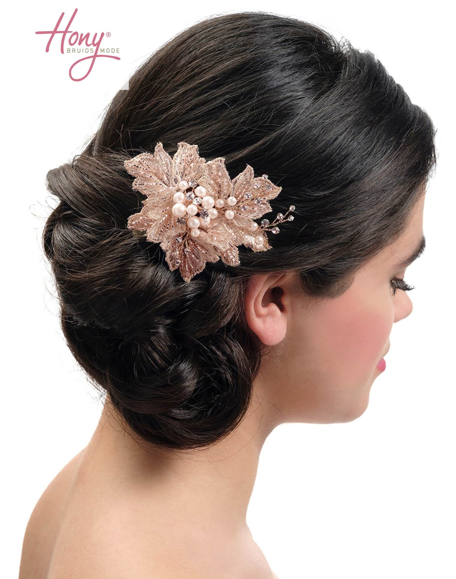 Prachtige haarcorsage met kanten bloemen in rosé. Bij Hony bruidsmode doen we er alles aan om bij de toonaangevende merken de mooiste accessoires voor jou te selecteren. Altijd het laatste nieuws en ontwikkelingen. We gaan alleen voor het allerbeste!