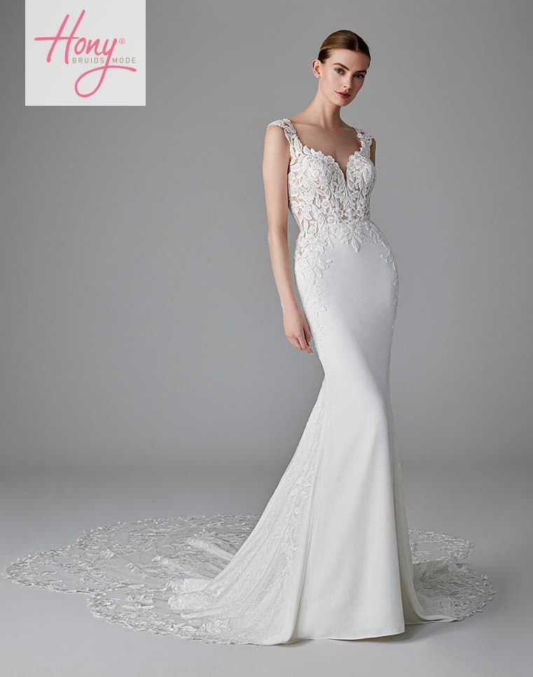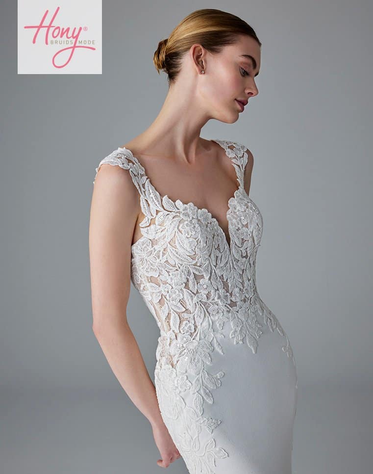 Bij Hony Bruidsmode in Zwolle vind je een prachtige collectie trouwjurken van Pronovias. Het Spaanse Pronovias is één van de meest toonaangevende merken in de bruidsmodewereld. Pronovias staat bekend om haar elegante jurken en vooruitstrevende ontwerpen. Hony Bruidsmode is met recht trots om deze schitterende collectie te mogen delen met jou als aanstaande bruid. De trouwjurken zijn voornamelijk gemaakt van prachtige luxe stoffen zoals kant en mikado. Naast de elegante belijning zijn duidelijk de Spaanse invloeden terug te vinden in de ontwerpen. Pronovias streeft er naar het vrouwelijk lichaam perfect te weerspiegelen en doet dit in verschillende stijlen. Van modern naar klassiek, tussen eenvoudig en extravagant en met een strakke of juist een romantische lijn.