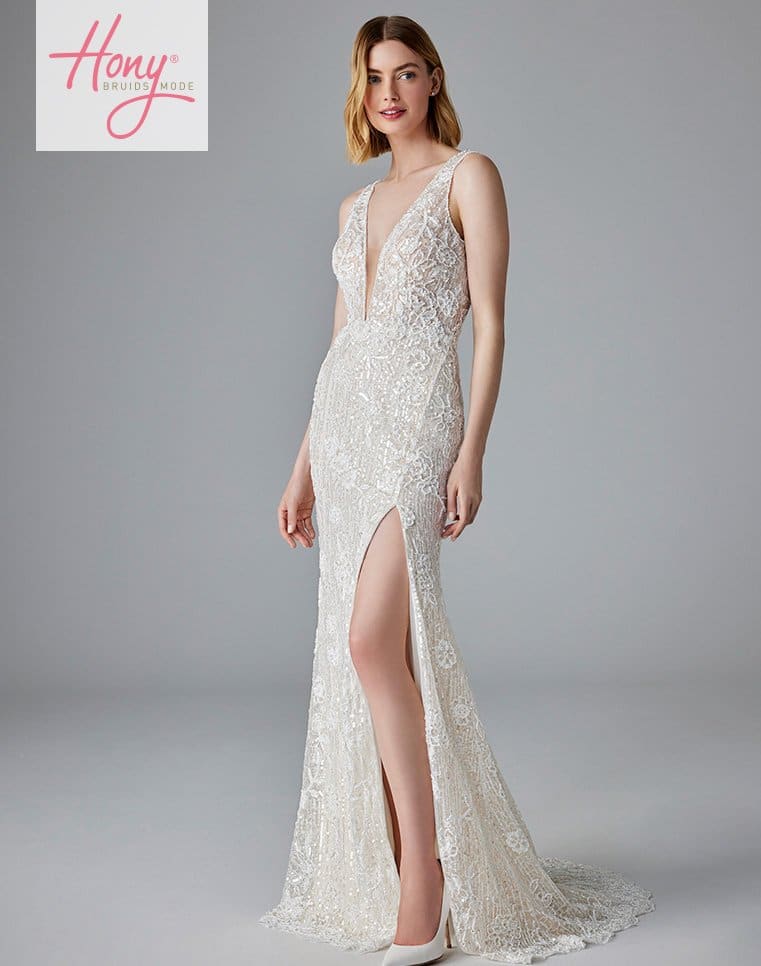 Bij Hony Bruidsmode in Zwolle vind je een prachtige collectie trouwjurken van Pronovias. Het Spaanse Pronovias is één van de meest toonaangevende merken in de bruidsmodewereld. Pronovias staat bekend om haar elegante jurken en vooruitstrevende ontwerpen. Hony Bruidsmode is met recht trots om deze schitterende collectie te mogen delen met jou als aanstaande bruid. De trouwjurken zijn voornamelijk gemaakt van prachtige luxe stoffen zoals kant en mikado. Naast de elegante belijning zijn duidelijk de Spaanse invloeden terug te vinden in de ontwerpen. Pronovias streeft er naar het vrouwelijk lichaam perfect te weerspiegelen en doet dit in verschillende stijlen. Van modern naar klassiek, tussen eenvoudig en extravagant en met een strakke of juist een romantische lijn.